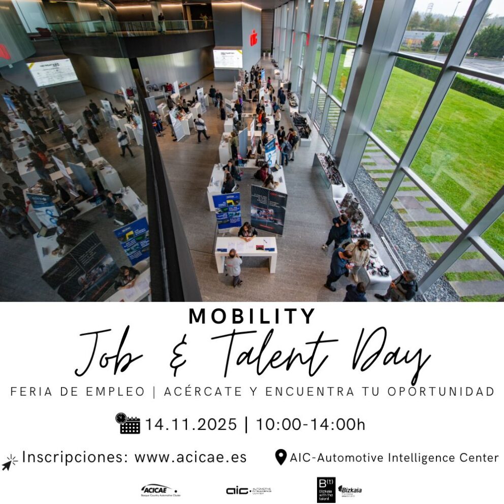 ACICAE, with the collaboration of AIC-Automotive Intelligence Center and the Provincial Council of Bizkaia, has launched a new edition of Mobility Job & Talent Day, a Job Fair that aims to attract talent for the mobility sector, facilitate the entry into the market of those seeking job opportunities and enable the change of job.